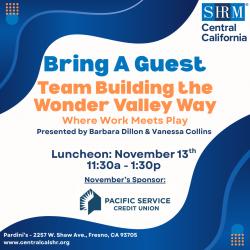 The Central California Society for Human Resource Management (CCSHRM) is a nonprofit organization serving California’s Central Valley HR professionals. Our members are from throughout Fresno and Madera Counties and other surrounding communities. CCSHRM brings professionals together to help them stay abreast of ever-changing employment legislation, network with colleagues, and provide a forum for exchanging information about trends and ideas used in Human Resource management today.
